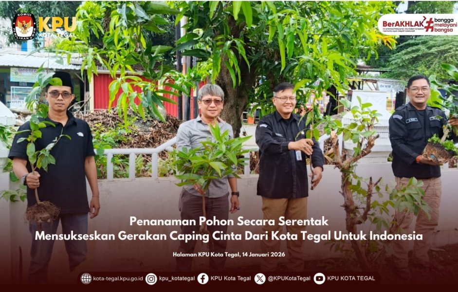 Dalam rangka memperingati Hari Lingkungan Hidup, KPU Kota Tegal turut berpartisipasi dalam kegiatan penanaman pohon secara serentak sebagai tindak lanjut Surat Edaran Wali Kota Tegal Nomor 600.4.1/0001 Tahun 2026 tentang Gerakan Caping Cinta Kota Tegal untuk Indonesia. Kegiatan ini merupakan wujud komitmen bersama dalam menjaga kelestarian lingkungan serta mendukung terwujudnya Kota Tegal yang hijau, sehat, dan berkelanjutan. ???? Menanam hari ini, menjaga bumi untuk masa depan ....