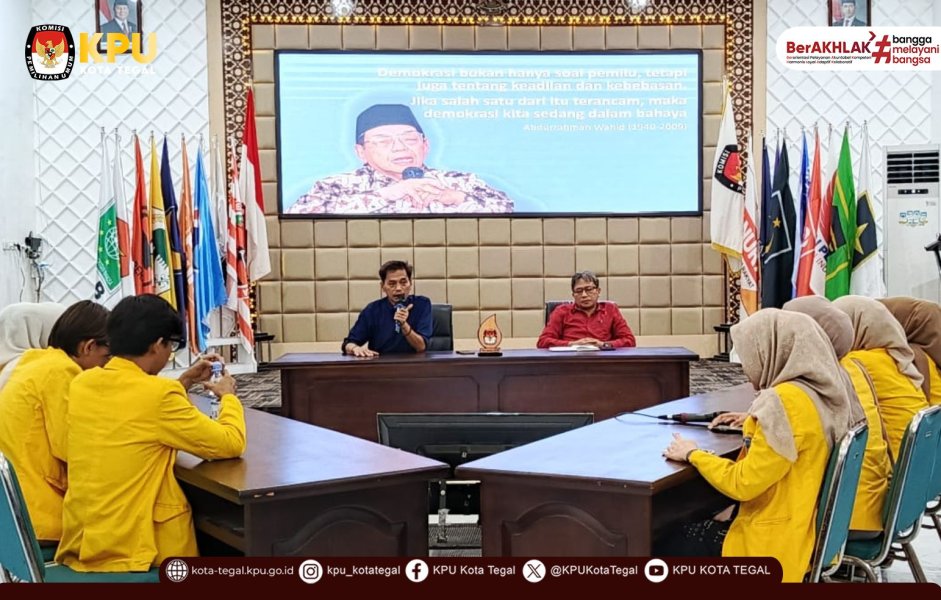 #temanpemilih Rabu, 21 Januari 2026 KPU Kota Tegal melaksanakan kegiatan Belajar Kepemiluan bersama dengan Mahasiswa Universitas Pancasakti tegal. Materi diisi oleh Ketua KPU Kota Tegal, Bapak Karyudi Prayitno, S.H dan dimoderatori oleh Ketua Divisi Perencanaan Data dan Informasi, Bapak Imam Gojali, S.H. ....