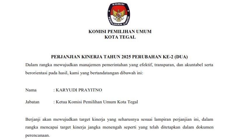 Perjanjian Kinerja Ketua KPU Kota Tegal Tahun 2025 Perubahan Ke-2 (dua) unduh di sini ....