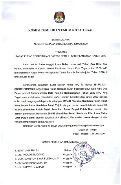 Berita Acara Rekapitulasi Daftar Pemilih Berkelanjutan Bulan Juni Tahun 2020