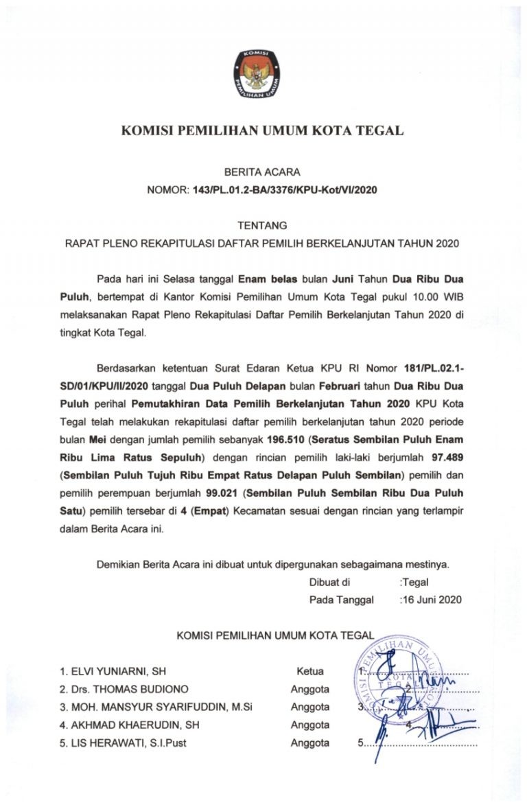 Berita Acara Rekapitulasi Daftar Pemilih Berkelanjutan Bulan Mei Tahun 2020