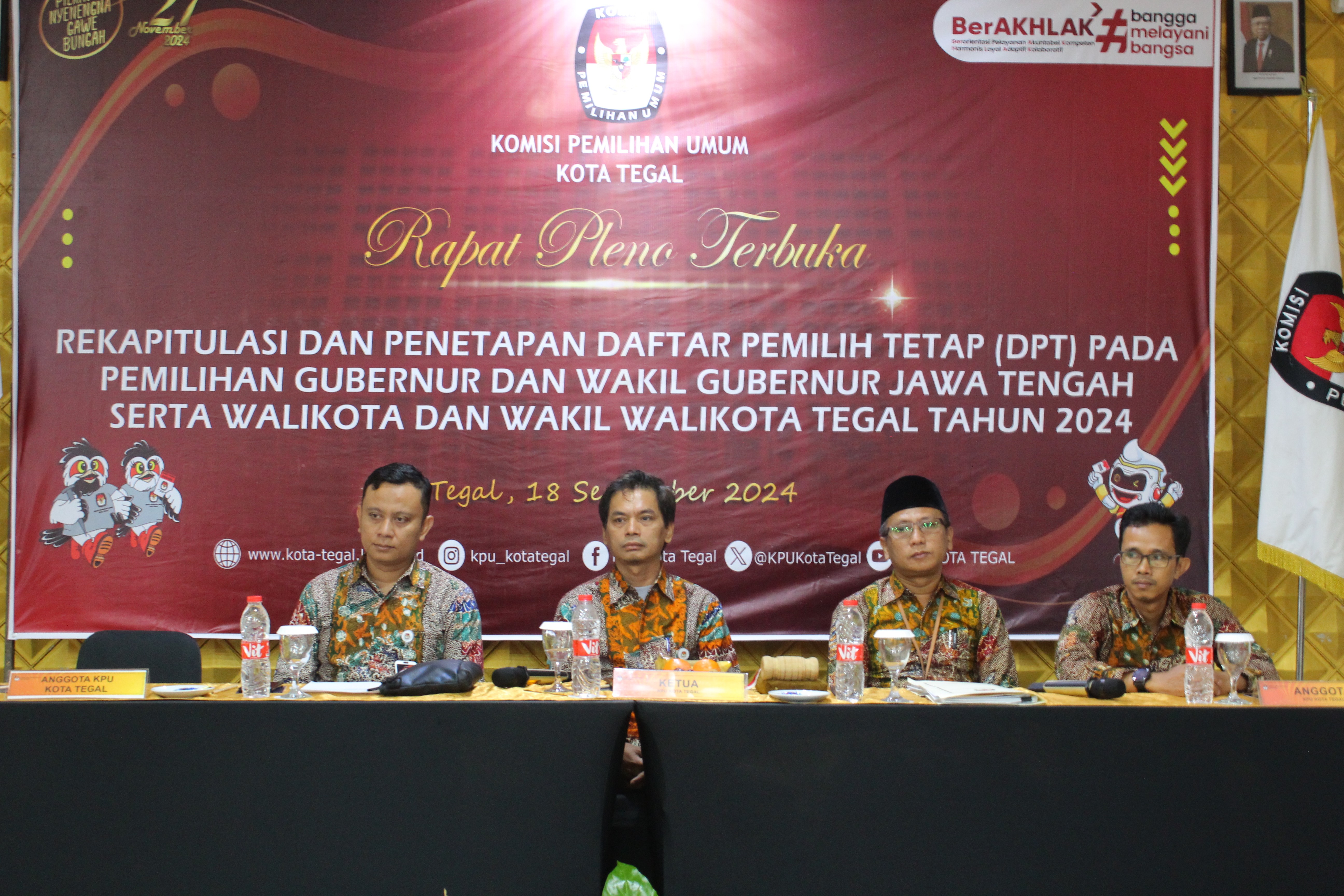KPU Kota Tegal selenggarakan Rapat Pleno Terbuka Rekapitulasi dan Penetapan Daftar Pemilih Tetap (DPT) pada Pemilihan Gubernur dan Wakil Gubernur Jawa Tengah serta Walikota dan Wakil Walikota Tegal Tahun 2024 pada (18 September 2024).