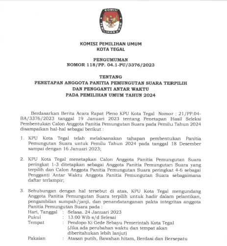 PENETAPAN ANGGOTA PANITIA PEMUNGUTAN SUARA TERPILIH DAN PENGGANTI ANTARWAKTU PADA PEMILU 2024