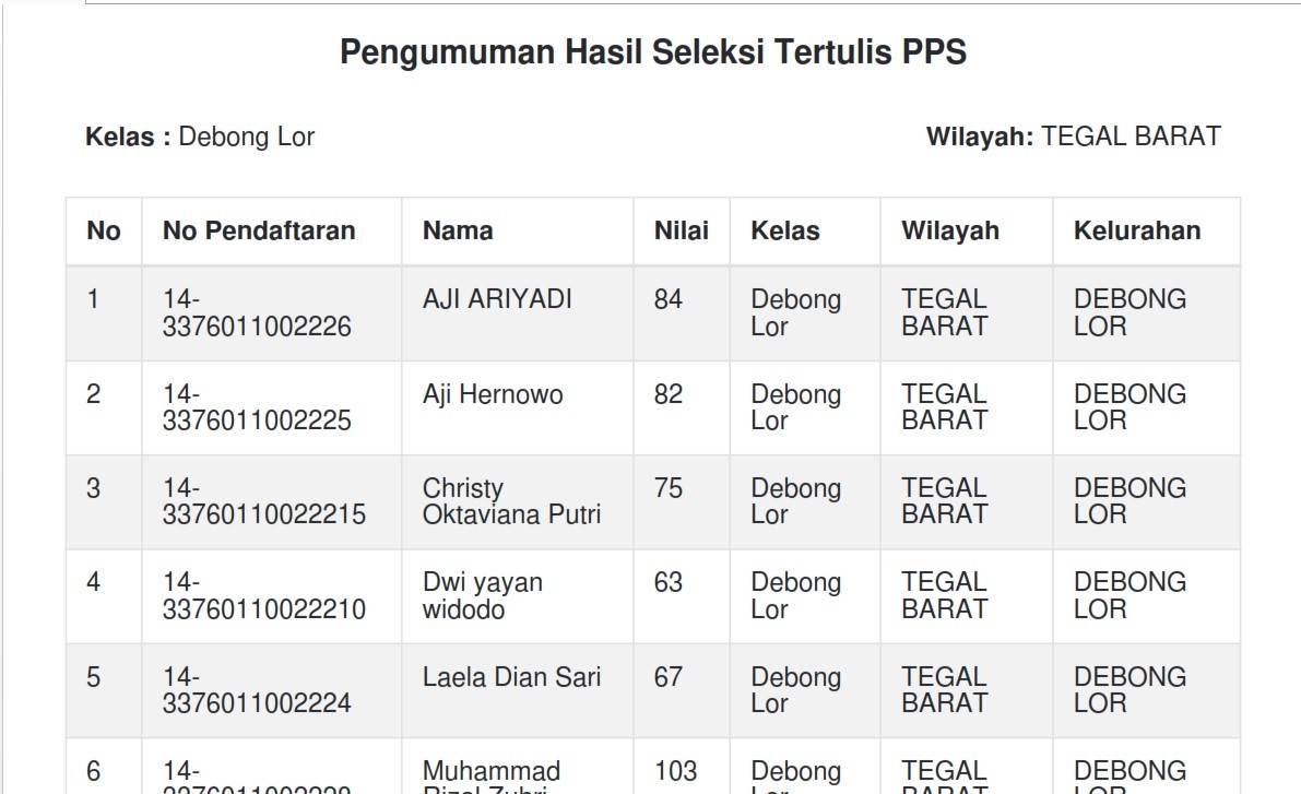 PENGUMUMAN HASIL SELEKSI TERTULIS CAT PANITIA PEMUNGUTAN SUARA KECAMATAN TEGAL BARAT UNTUK PEMILU 2024