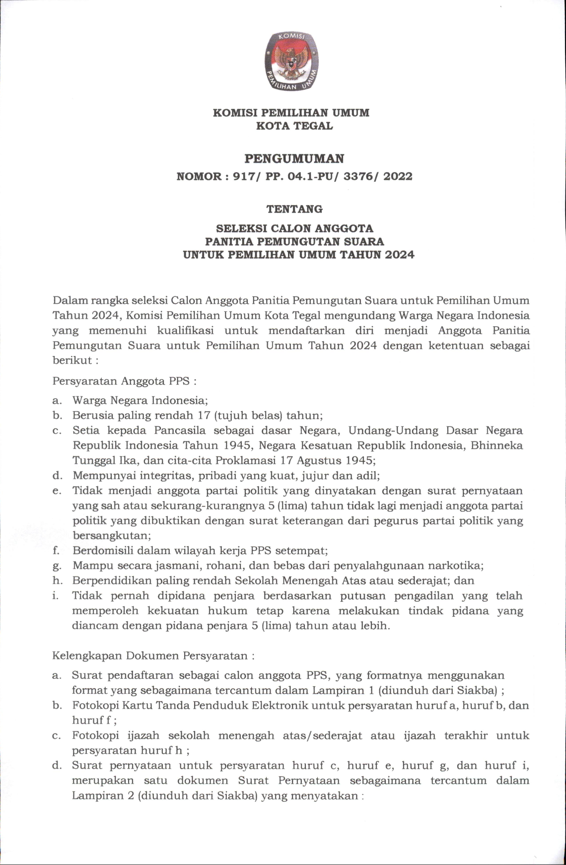 KLIK DI SINI UNTUK UNDUH PENGUMUMAN SELEKSI CALON ANGGOTA PPS PEMILU 2024