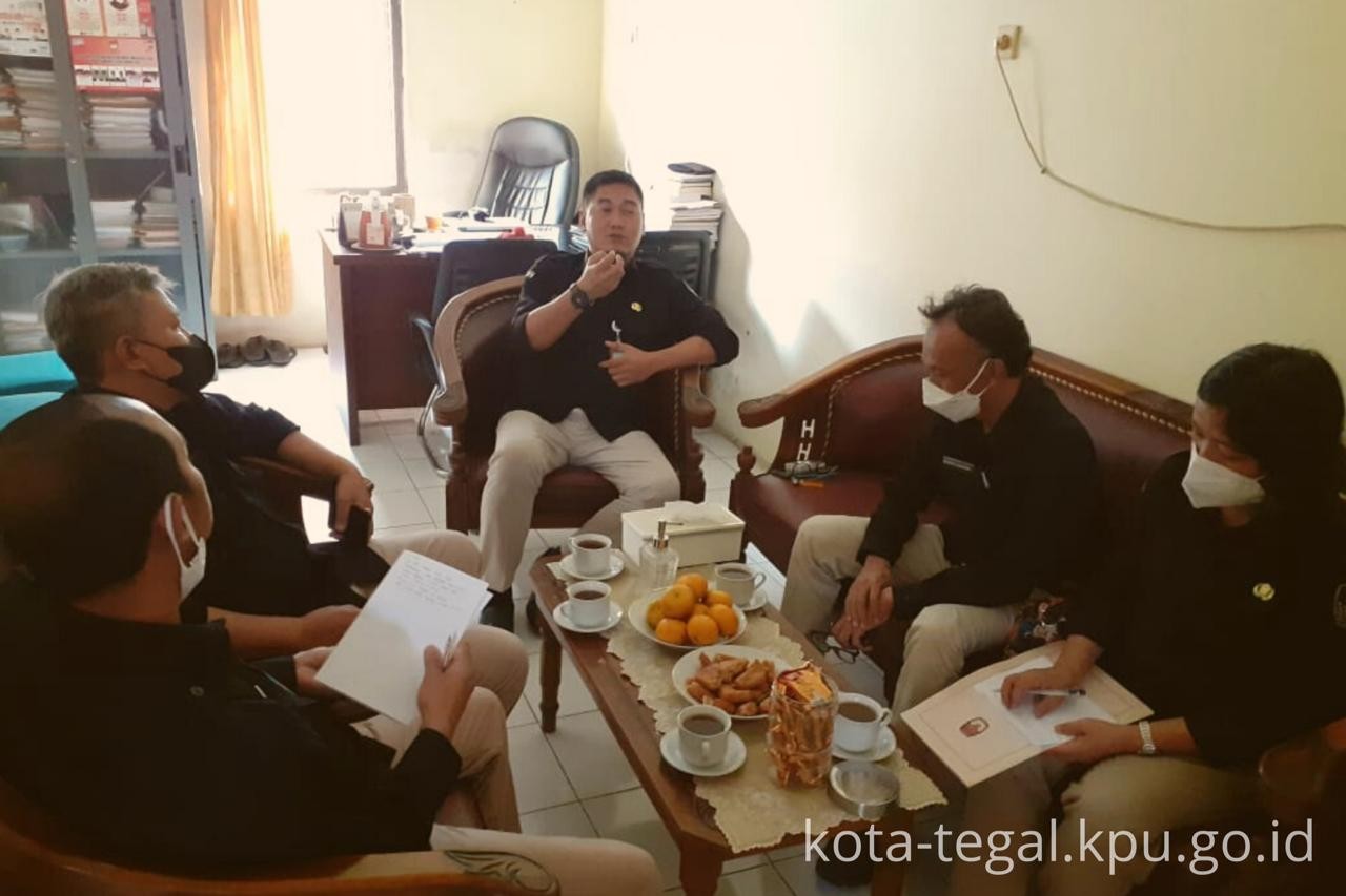Tegal – Rabu tanggal 15 Desember 2021 Sekretaris KPU Kota Tegal menerima kunjungan dari Biro Logistik Sekretariat Jenderal KPU RI, yakni Iswantoro (Kepala Bagian pengadaan barang & jasa), Wawan Gunawan (fungsional ahli muda pengadaan barang & jasa) dan Gustiar Panjaitan (Kasubbag bimbingan dan pendampingan pengadaan barang & jasa). Agenda kunjungan tersebut merupakan rangkaian kegiatan monitoring dan evaluasi Biro Logistik KPU RI dalam rangka persiapan penata kelolaan logistik Pemilu dan Pemilihan Tahun 2024. Kunjungan tersebut diterima oleh Sekretaris KPU Kota Tegal, Andi Budi Harjanto dan Kepala Sub Bagian Keuangan, Umum, dan Logistik KPU Kota Tegal, Aditya ST Wisanggeni.