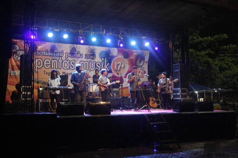 Dalam rangka sosialisasi Pemilu 2019 bagi pemilih Pemula yang baru berusia 17 tahun, KPU Kota Tegal menyelenggarakan Pentas Musik 17+ pada sabtu, 2 maret 2019. Bertempat di halaman kantor Pos Tegal. Acara ini dimeriahkan oleh beberapa Band, diantaranya Jali Watoe, Inside, Mistify, Metamorfosa dari SMA N 2 Tegal, dan Dimensi dari MAN Kota Tegal. Dimulai dari sore hari dengan pembuka band-band dari beberapa SMA yang ada di Kota Tegal. Dilanjutkan setelah isya. Walaupun diguyur hujan , acara tetap berlangsung meriah. Pada kesempatan ini ketua KPU Kota Tegal Agus Wijonarko memberikan sambutannya “masyarakat kota Tegal jangan lupa memilih, karna ada 5 Pemilihan pada Pemilu 2019. Pemilihan Presinden dan wakil Presiden, Pemilihan DPRD Provinsi, Pemilihan DPR RI, Pemilihan DPD Jawa Tengah, serta Pemilihan DPRD Kab/Kota” Dipertengahan acara Komisioner KPU Kota Tegal Thomas Budiono memberikan pemahaman terkait Pemilu 2019 “bagi pemilih yang sudah berusia 17 Tahun wajib menggunakan hak pilihnya pada Pemilu 2019 tanggal 17 April nanti” Pentas Musik 17+ ditutup dengan pemberian piagam oleh Ketua KPU Kota Tegal Agus Wijonarko kepada band dan pengisi acara serta penampilan dari Jali Watoe Band. (ftr)