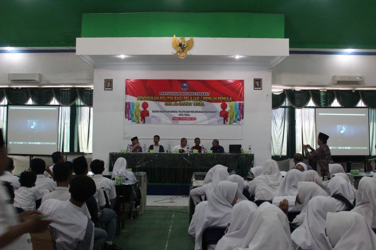 Rabu, 10 Oktober 2018 KPU Kota Tegal diwakili oleh Thomas Budiono Selaku Divisi SDM dan Parmas menjadi Narasumber di Acara Penyuluhan Bagi Masyarakat “Pendidikan Politik Bagi Pelajar /Pemilih Pemula” yang diselenggarakan oleh Kesbangpolinmas Kota Tegal. Bertempat di Aula SMA Al-Irsyad Tegal. Sambutan oleh Kepala Kesbangpol Kota Tegal Imam Teguh Sutomo MM, dalam sambutannya pemilih diharapkan memunculkan pemimpin yang baik di Negeri ini. Beliau sekaligus membuka program kegiatan penyuluhan pendidikan Politik bagi pelajar / pemilih pemula yang nantinya akan dilaksanakan di beberapa SMA di Kota Tegal. Kegiatan tersebut diselenggarakan guna memberi pendidikan politik bagi pemilih pemula, yang nantinya akan menjadi pemilih pada pemilu 2019 nanti. Narasumber dari KPU dan Bawaslu, KPU Kota Tegal yang diwakili oleh Thomas Budiono memaparkan beberapa hal terkait pemilu 2019. Pelaksanaan Pemilu 2019 pada 17 April 2019 memilih Presiden dan Wakil Presiden, DPD, DPRD Jateng, DPR RI, DPRD Kota Tegal, serta pemilih yang sudah berusia 17 tahun diwajibkan untuk menjadi pemilih yang cerdas. Nantinya ada 5 warna Kertas suara, Abu-abu untuk Presiden dan Wakil Presiden, Kuning untuk DPR RI, Merah untuk DPD RI, Biru untuk DPRD Provinsi, Hijau untuk DPRD Kota/Kab. Dari Bawaslu Kota Tegal Akbar Kusharyanto menyampaikan berbagai macam pelanggaran pemilu, kegiatan Pengawasan Pemilu. Kegiatan tersebut berlangsung kondusif, beberapa pelajar juga aktif bertannya kepada narasumber. Dan dijawab langsung oleh narasumber. Diharapan dengan mengikuti sosialisasi ini, pemilih pemula sudah tidak awam lagi terkait pemilu 2019.(ftr)