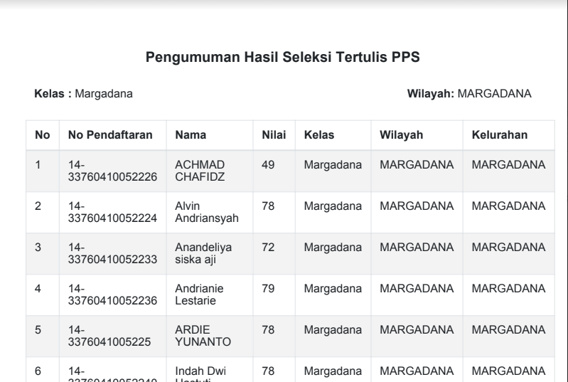 UNDUH TAMBAHAN PENGUMUMAN HASIL SELEKSI TERTULIS CAT PANITIA PEMUNGUTAN SUARA KECAMATAN MARGADANA UNTUK PEMILU 2024