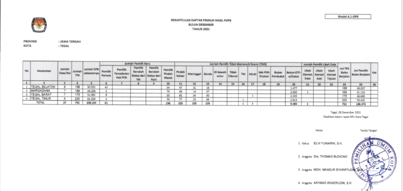 Daftar Pemilih Berkelanjutan Bulan Desember 2021 Unduh Rekap dan BA DPB Desember di sini Share this artikel : Dilihat 1,099 Kali.