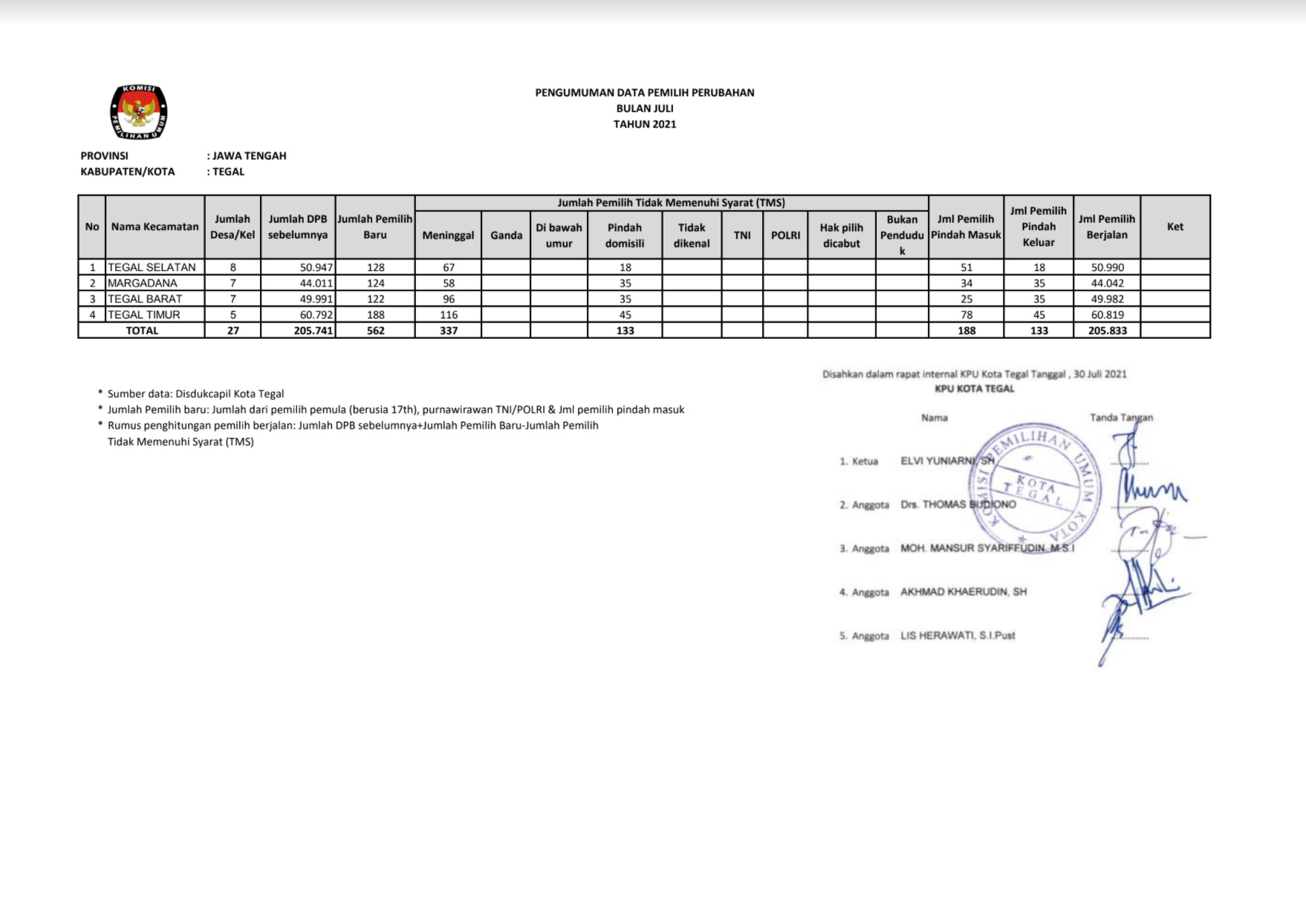 Daftar Pemilih Berkelanjutan Bulan Juli 2021