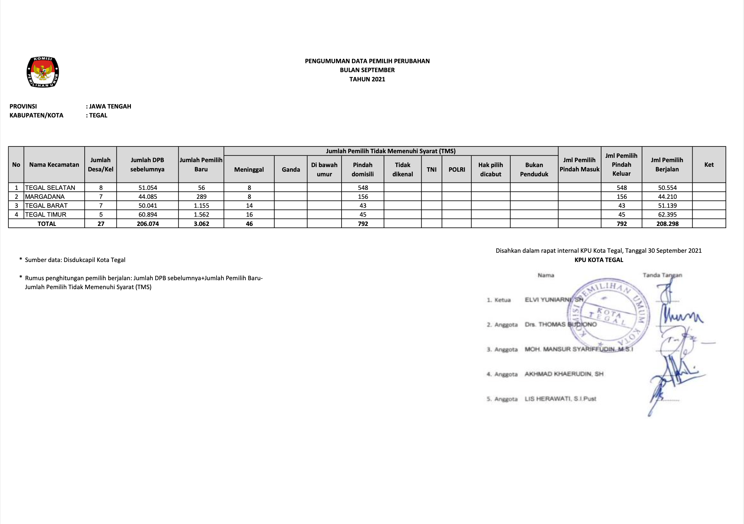 Daftar Pemilih Berkelanjutan Bulan September 2021 REKAP UNDUH DI SINI BA UNDUH DI SINI Share this artikel : Dilihat 863 Kali.