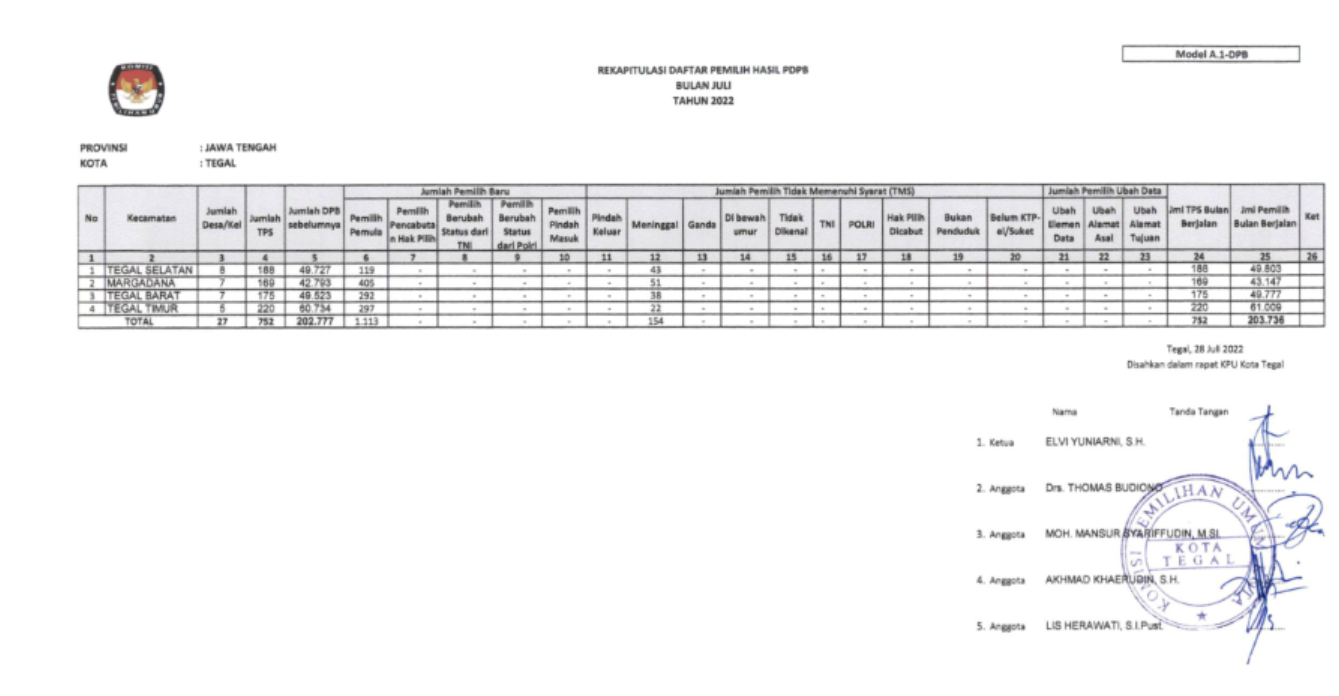 DPB JULI 2022 Unduh Berita Acara dan Rekapitulasi DPB Juli 2022 di sini Unduh Daftar Pemilih Hasil Perubahan DPB Juli 2022 di sini Share this artikel : Dilihat 784 Kali.