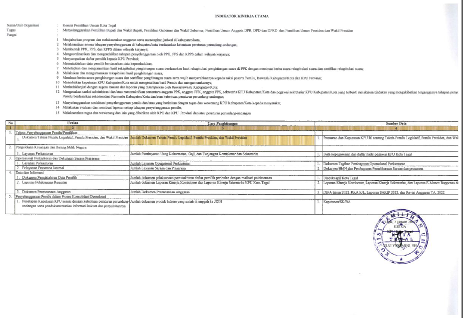 Keputusan KPU Kota Tegal Tahun 2024-2025