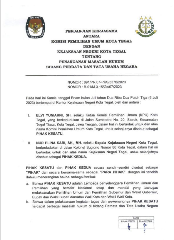 Perjanjian Kerjasama dengan Kejaksaan Negeri Kota Tegal Selengkapnya unduh di sini Share this artikel : Dilihat 543 Kali.