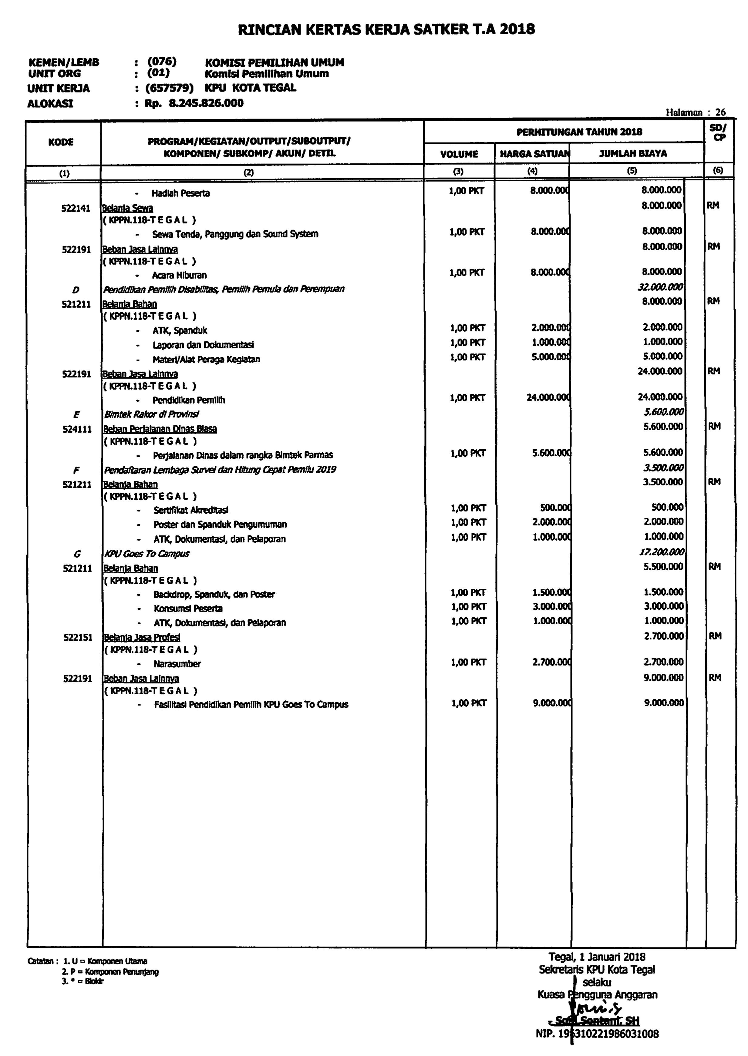 Keputusan KPU Kota Tegal Tahun 2024-2025