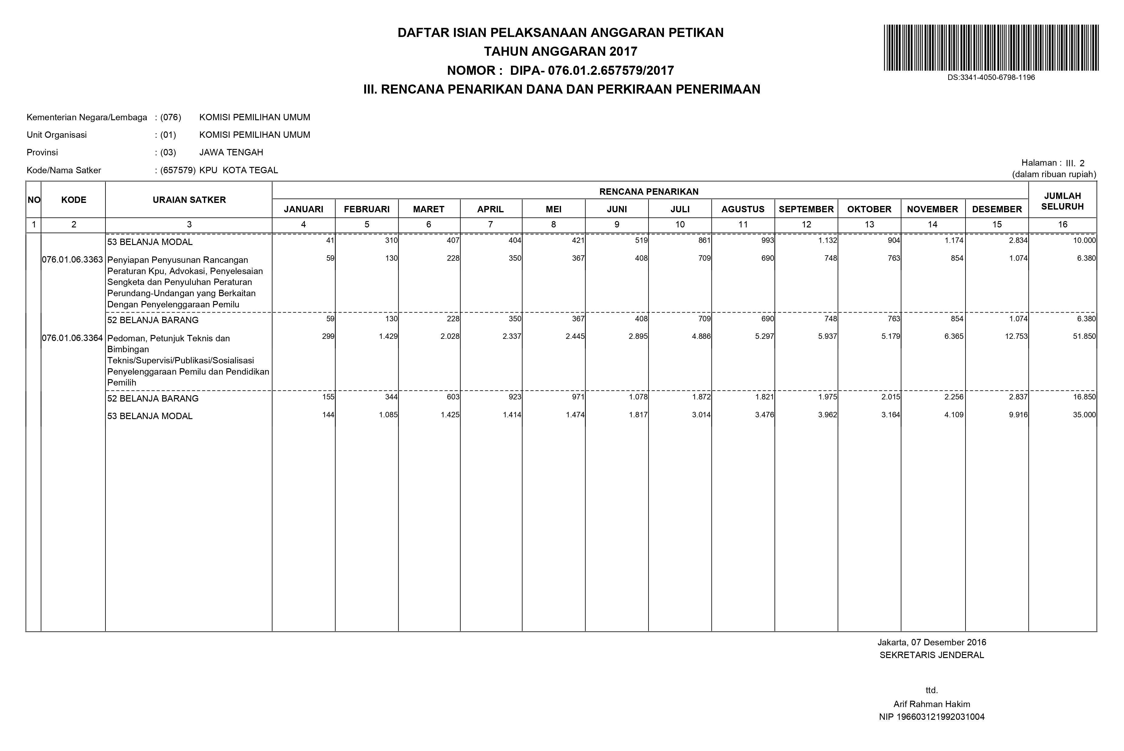 Pengumuman Hasil Penerimaan Laporan Penerimaan dan...