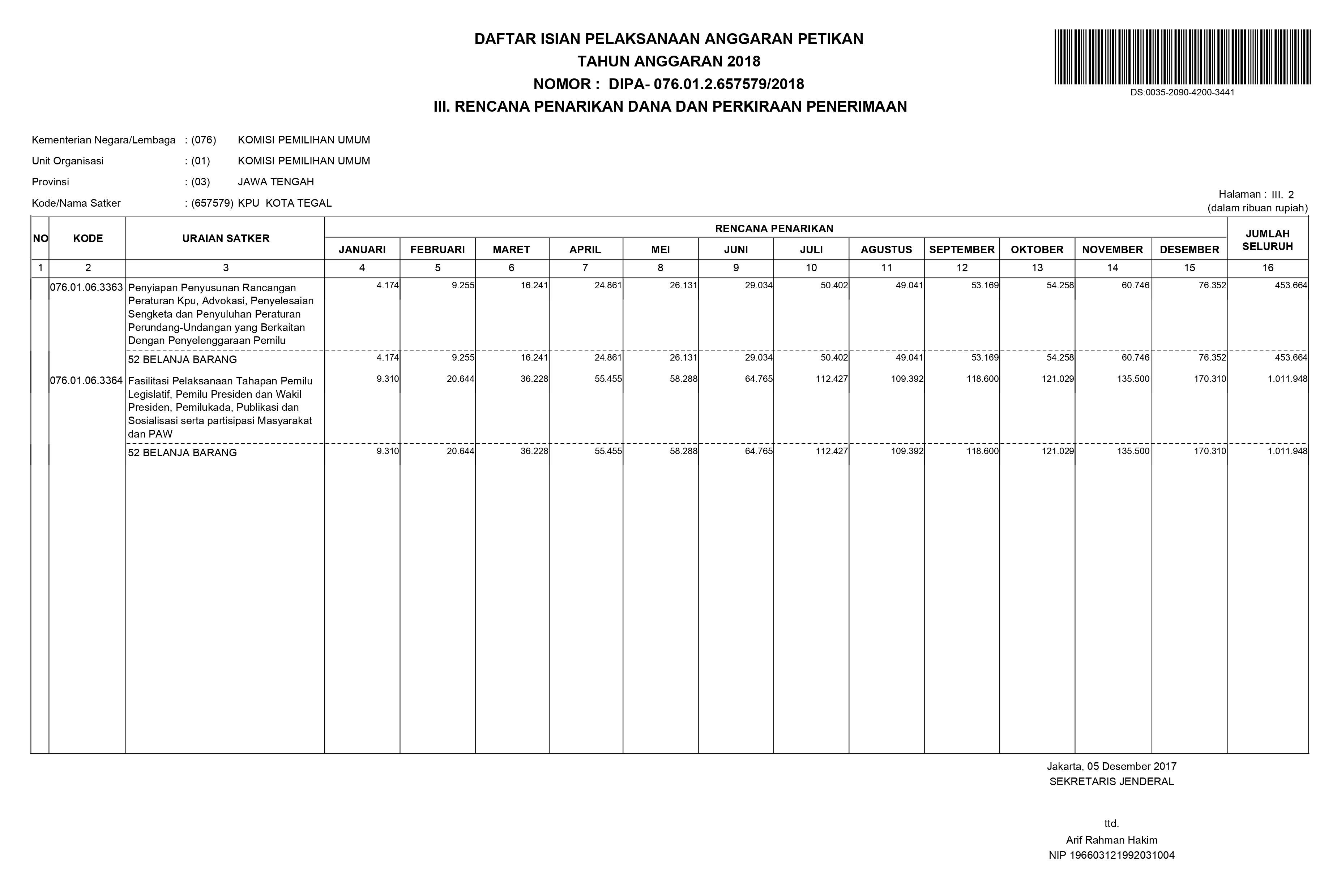 Pengumuman Hasil Penerimaan Laporan Penerimaan dan...