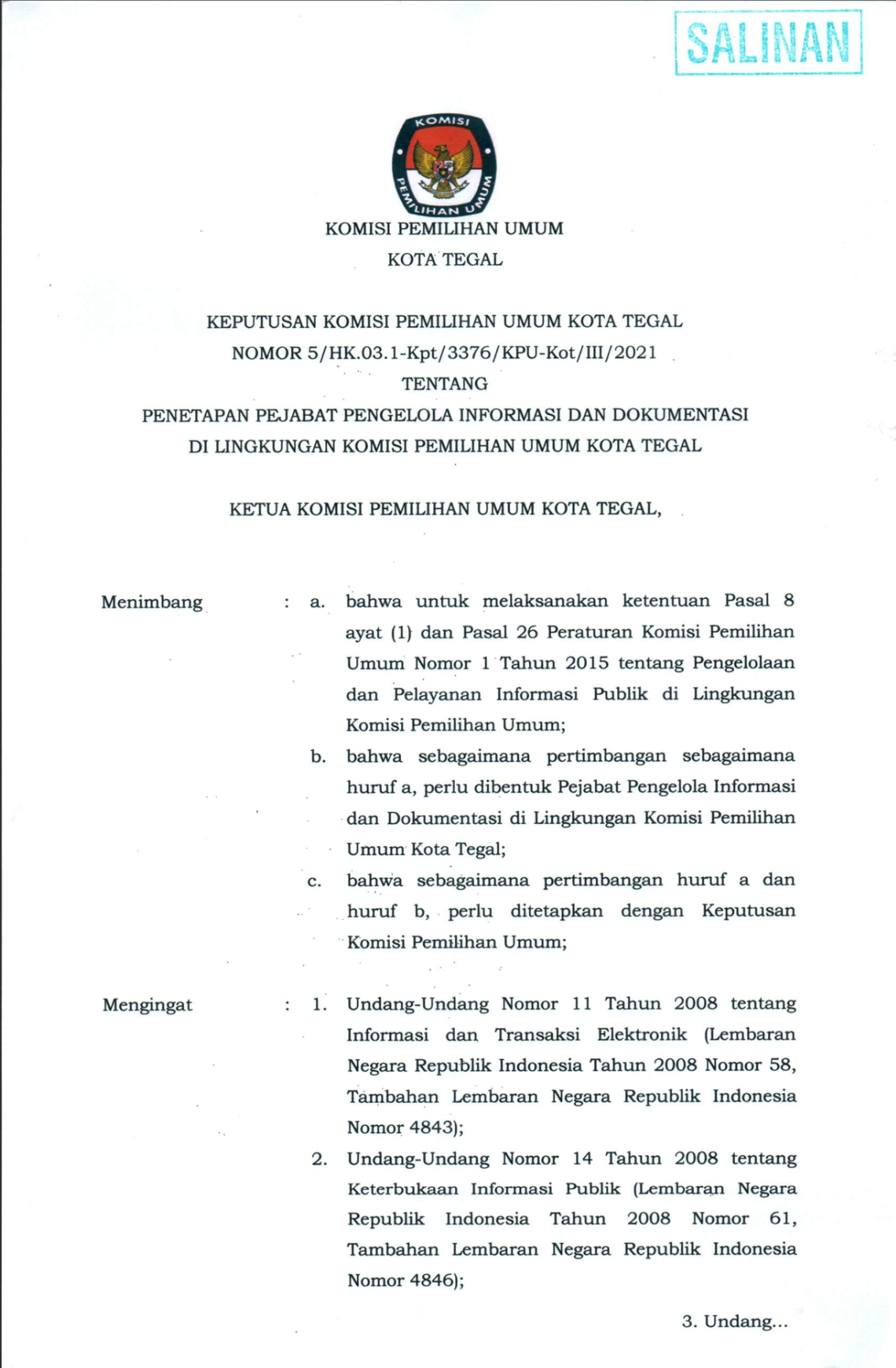 Keputusan KPU Kota Tegal Tahun 2024-2025